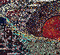 L'expérience du détail Première tentative pour faire apparaître le pixel, j'effectue des cadrages La transposition de l'image numérique en image gravée - de nouvelles expériences - de l'encrage polychrome sur une seule plaque, à l'encrage polychrome en plusieurs plaques . L'aventure du "pour voir" |