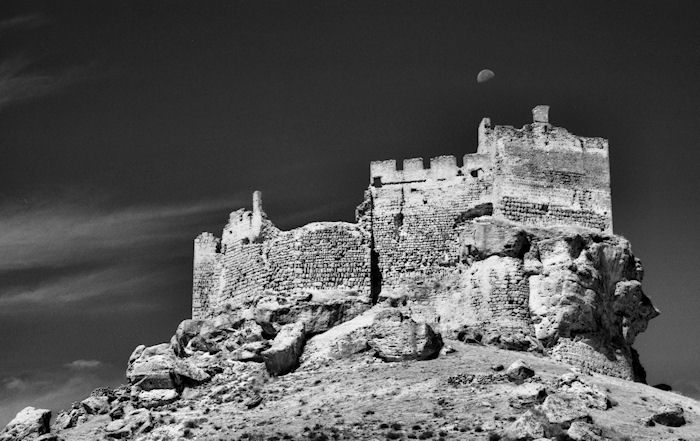 .Ce ciel noir et cette lune irréelle... nous étions dans un autre monde, c'était le château de Chimène celui de son père don Gormaz, en tout cas cela nous plaisait d'y croire.
